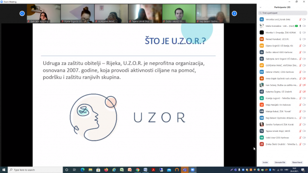 Edukaciju je održao U.Z.O.R., odnosno Udruga za zaštitu obitelji – Rijeka te je nosila naziv „Edukacija namijenjena umrežavanju institucija i organizacija koje se bave problematikom obiteljskog nasilja i maloljetnih počinitelja kaznenih djela“. Edukaciju su proveli psihologinja Maša Komadina te socijalni pedagog i psihoterapeut Nenad Karabaić.